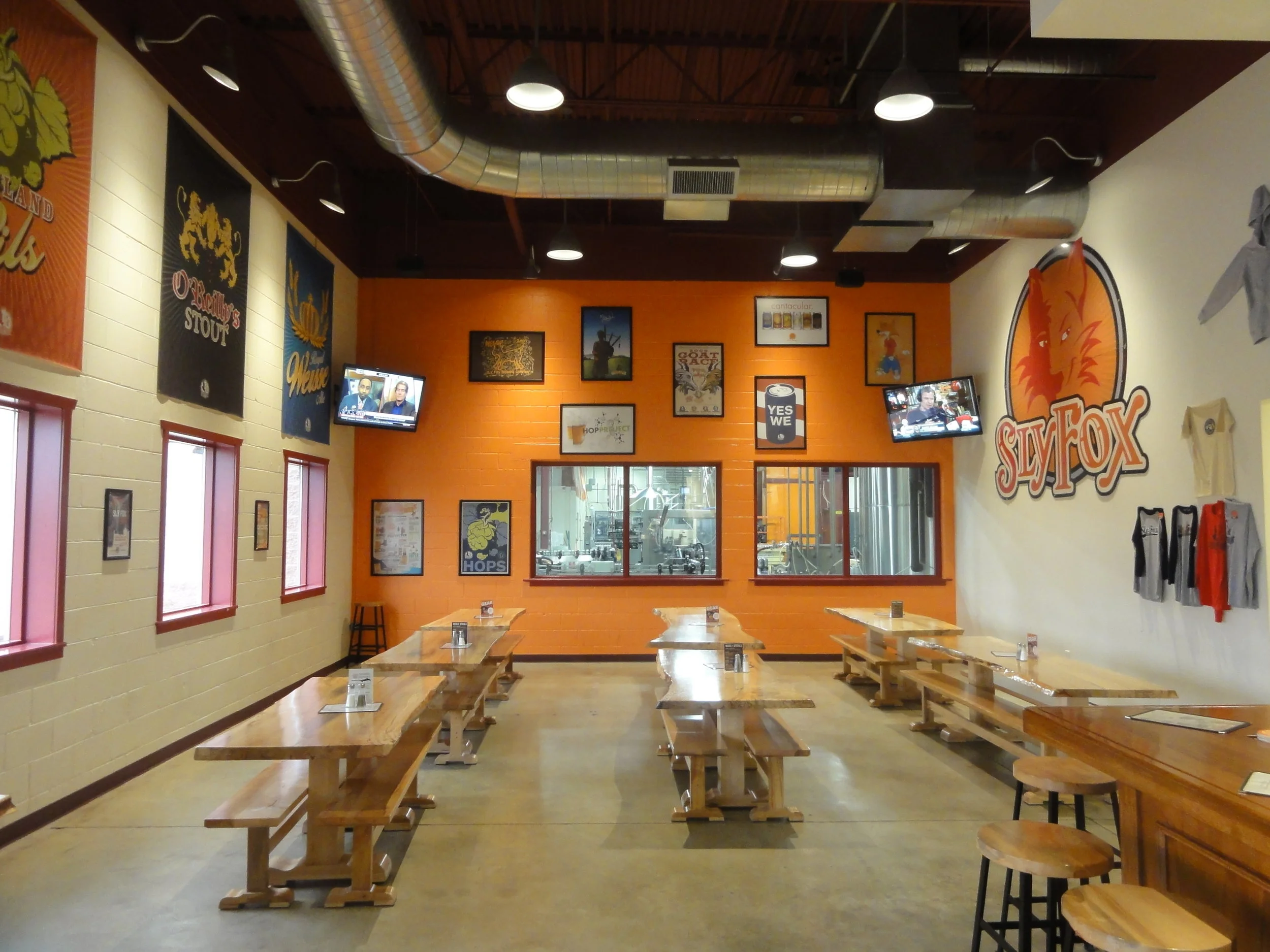 "A brewpub founded in late 1995 by Pete Giannopoulos, today Sly Fox has grown into one of the state’s most potent beer brands. Initially offering updated takes on classic European styles, beers like Pikeland Pils and Royal Weisse were early hits. By 2002 popularity was big enough that Sly Fox offerings could be sold outside of the brewpub—they were even one of the first craft breweries to can beer, starting in 2006. By 2012 they needed a whole new production brewery in Pottstown. Today, the focus on classic European styles has shifted, somewhat, to keeping up with the American state-of-the-art, like with their new Hop Project beers offered in hip 16-ounce cans." [foodandwine.com]